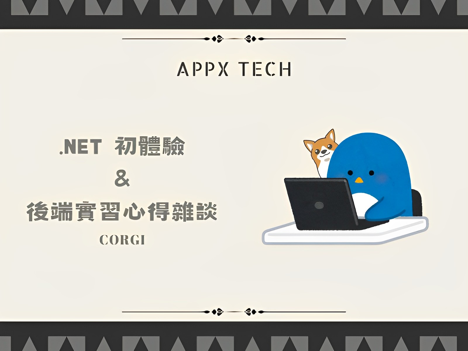 嗨囉大家好!我是柯基。目前是資工系大三的學生,並在APPX時賦科技擔任非常菜的後端實習生。
